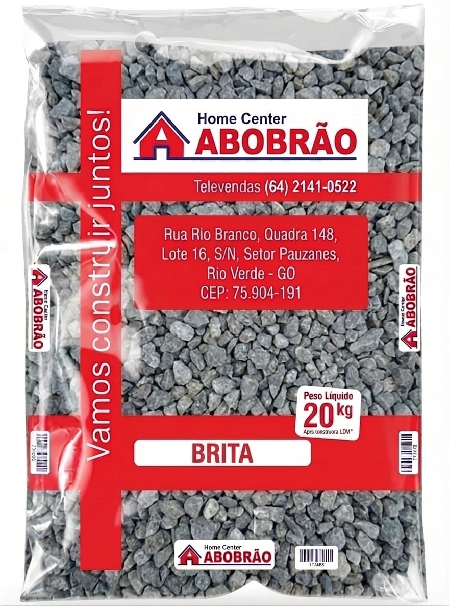 Pedra utilizada para obras importantes, indispensável para a maior parte de projetos na construção civil. Na pavimentação de rodovias, construção de barragens e ferrovias a brita também é fundamental. Embalagem de 20kg de Pedra (brita)